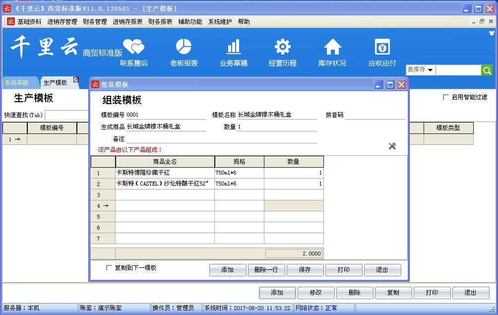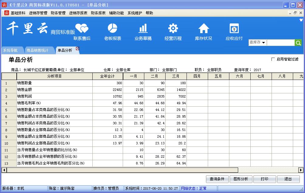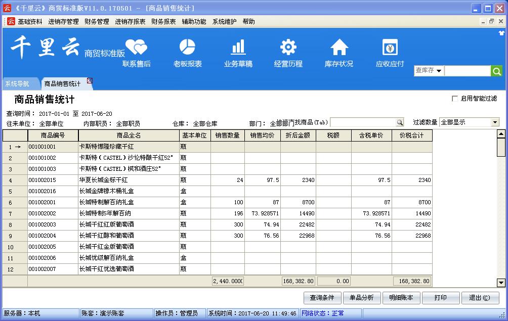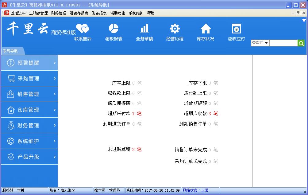 一、千里云商贸标准版的功能如下: